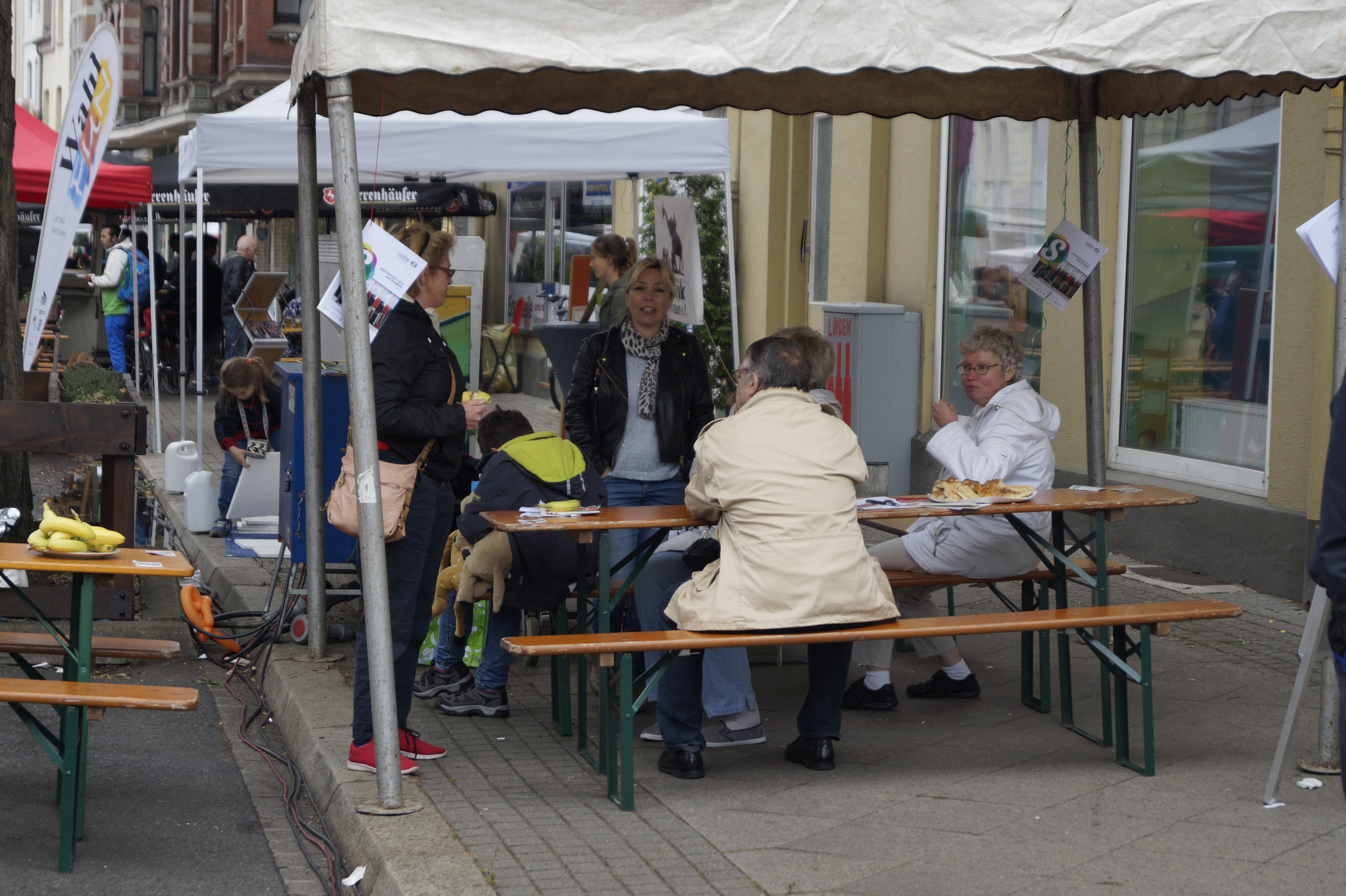 Obwohl das Wetter zwischenzeitlich eher unpassend für ein Straßenfest war, trauten sich in den Regenlücken doch viele Besucher zu uns und wurden mit spannenden Aktionen belohnt.