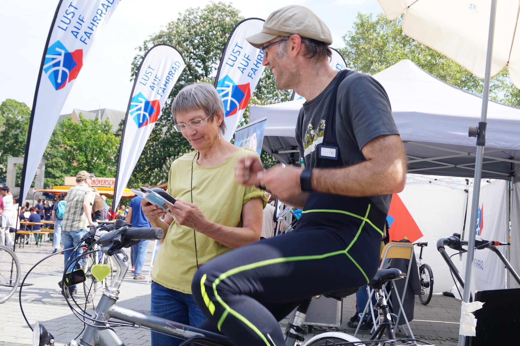 So richteten auch wir unseren Stand dort ein und präsentierten nicht nur unser Lastenrad, sondern hatten auch den Ökotrainer im Gepäck, der es ermöglicht, mit dem Fahrrad Strom zu erzeugen.