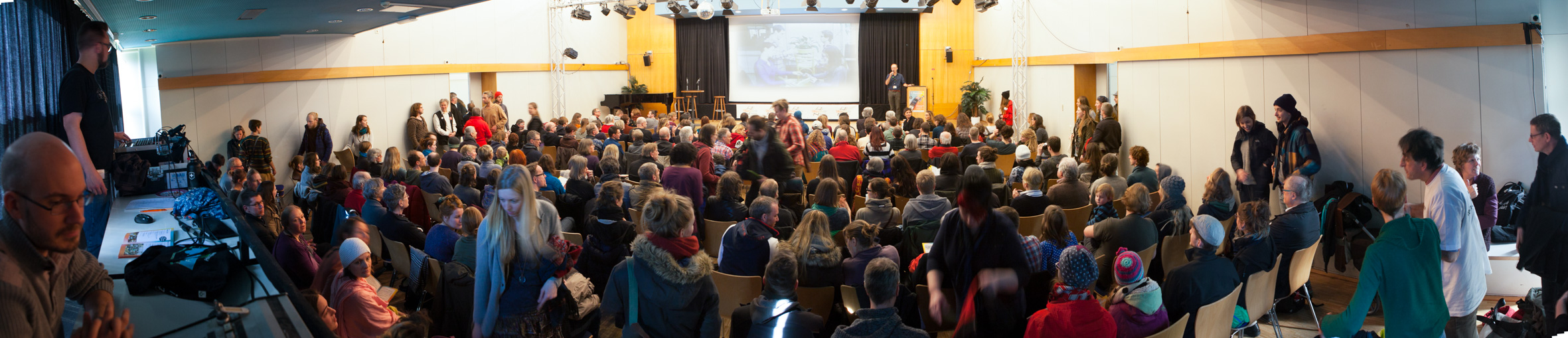 Trotz herrlichem Sonnenschein haben sich am Wochenende 27./28.02.2016 über 450 Menschen in den Kinosaal des Freizeitheim Linden eingefunden, um sich Dokumentationen rund um Themen Nachhaltiger Lebensstile anzusehen. Auch die Workshops und Infostände waren gut besucht.