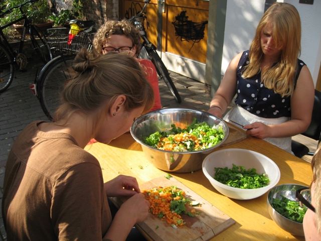Mobile Kochgemeinschaft – das nachhaltige Kochevent für alle, die sich quirlig mit saisonalen Gemüse vergnügen, gemeinsam schnippeln und die geretteten und mitgebrachten Lebensmittel zu einem veganen Gaumenschmaus veredeln wollen. Gemeinsam quatschen, kochen und genießen.